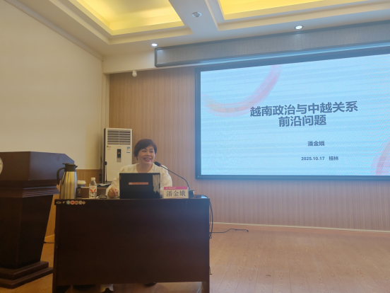 潘金娥教授主要围绕越南国情、政治体制、革新进程及中越关系发展等前沿议题展开深入讲解系统介绍了越南的基本国情、政治权力结构特征,重点分析了近年来越南新一轮改革动向,尤其是行政机构精简、党政关系调整及“民族崛起新纪元”战略目标。她还结合历史与现实,回顾了中越两党两国从革命时期“同志加兄弟”的深厚情谊,到新时代构建具有战略意义的中越命运共同体的历史进程,强调了两国在经贸、基建、人文等领域的务实合作与未来潜力。