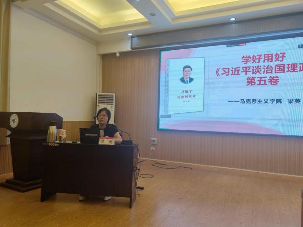 10月17日下午,由学院党委书记梁英教授带来《“学习习近平新时代中国特色社会主义思想”专题辅导》讲座。梁书记系统梳理了习近平新时代中国特色社会主义思想的时代背景、核心要义、精神实质、丰富内涵和实践要求,深刻解读了其作为当代中国马克思主义、二十一世纪马克思主义的重大意义。她强调,深入学习领会这一重要思想是新时期思政课教师的重要政治任务和教学要求。梁书记要求新教师深刻领悟“两个确立”的决定性意义,增强“四个意识”、坚定“四个自信”、做到“两个维护”,将习近平新时代中国特色社会主义思想全面、准确、生动、有效地融入各门思政课程的教学科研之中,引导学生坚定不移听党话、跟党走。