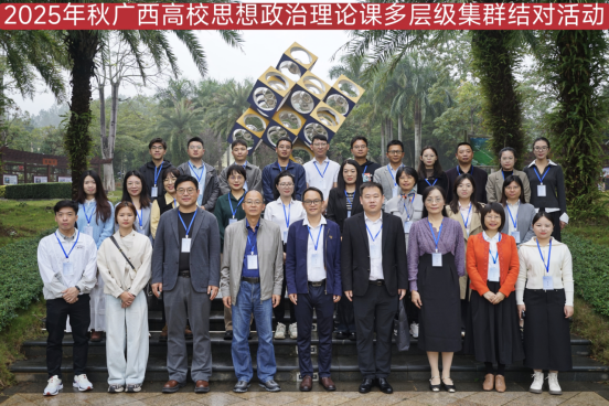 为深入学习贯彻习近平总书记关于推进思想政治理论课建设的重要论述精神,全面落实立德树人根本任务,提升学院教学和科研水平,近日,2025年秋季学期广西高校思想政治理论课多层级集群结对活动在我校南宁分校空港校区举行。由学院党委副书记马彬彬带队,我院教师代表一行参加了此次活动。